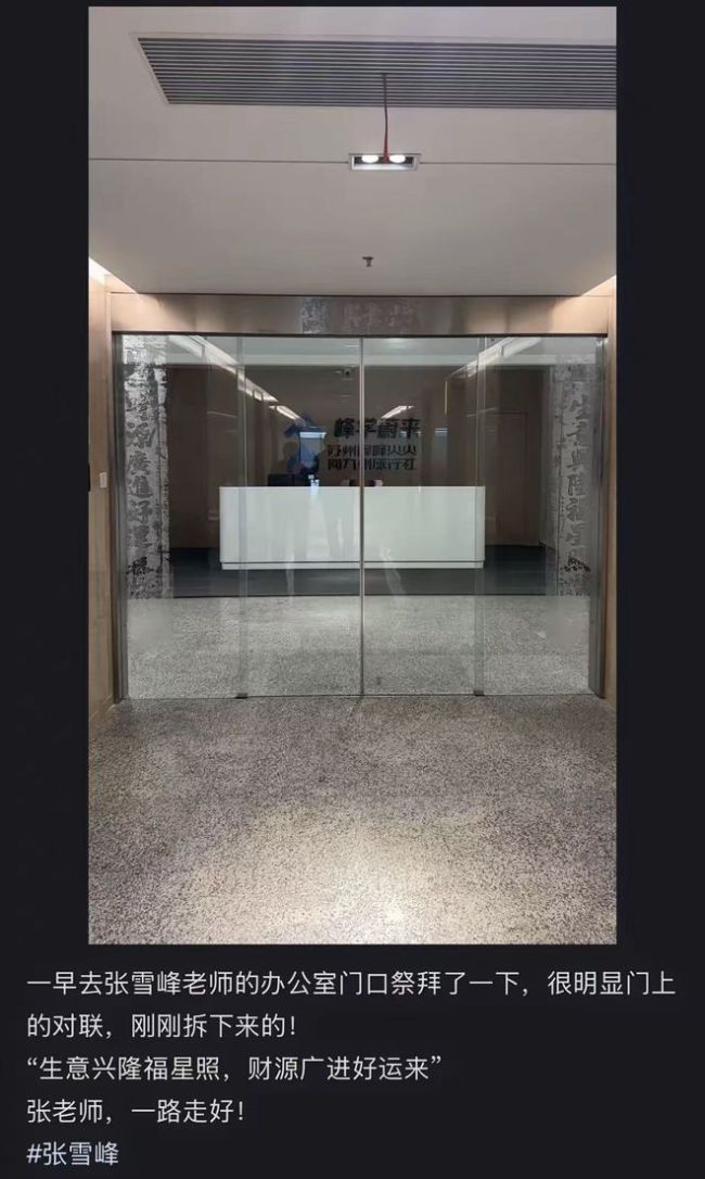 员工称张雪峰公司内拆掉红色装饰 红联虽拆初心未凉!2026年3月25日,苏州峰学蔚来的办公区显得格外冷清。有粉丝特意赶来想祭拜张雪峰,却发现办公区空无一人,门上那副红底的对联也被拆下。红色褪去,员工们用这种方式表达了对老板最朴素的尊重。