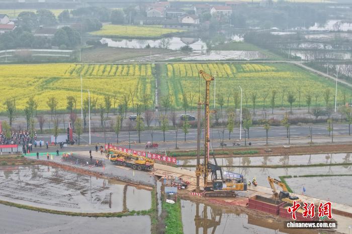 图为旋挖钻在项目地开钻。(无人机照片)中新社记者 杨华峰 摄