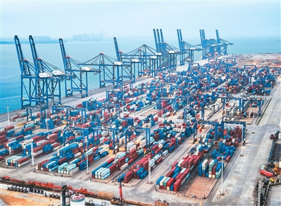 从2025年12月18日封关至2026年3月23日,近百天时间,海南洋浦港港口集装箱吞吐量达101.04万标箱,同比增长101.5%,外贸集装箱吞吐量超38.43万标箱,交出亮眼“成绩单”。图为洋浦港集装箱码头,港区集装箱堆放整齐,作业规范,秩序井然。