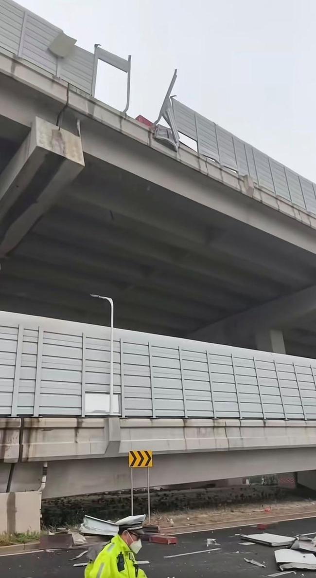 上海绕城高速两辆货车相撞 2人受伤声屏障碎裂
