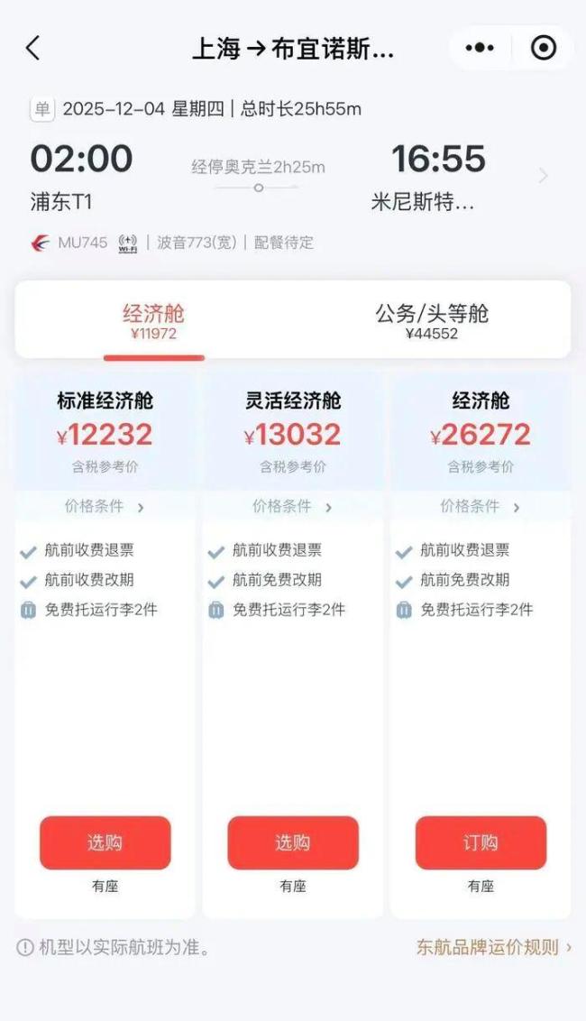 9月8日,中国东方航空的小程序显示,从上海直飞阿根廷布宜诺斯艾利斯的机票已经开售。这条航线不仅是中国和阿根廷两国间唯一一条直达航线,也将是全球最长的航线