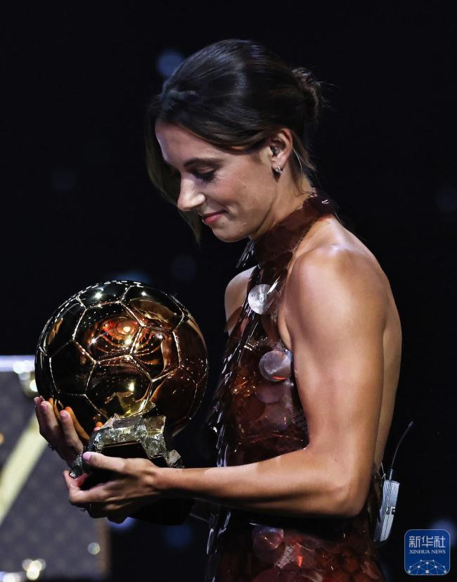当地时间9月22日,《法国足球》杂志在巴黎夏特莱剧院举办了2025年金球奖颁奖典礼。巴塞罗那队的西班牙球员邦马蒂获颁女足金球奖,这是她连续第三年获得该奖项。在颁奖仪式上,邦马蒂手捧奖杯,并从西班牙足球名宿伊涅斯塔手中接过奖杯