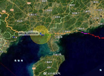 “桦加沙”昨天登陆广东阳江海陵岛后经过茂名、湛江,再次入海,并于今天6时30分前后在广西北海市沿海再次登陆。其强度明显减弱,目前已是热带风暴级,中心附近最大风力8级,20米/秒。今天,“桦加沙”造成的强风雨区域将转移