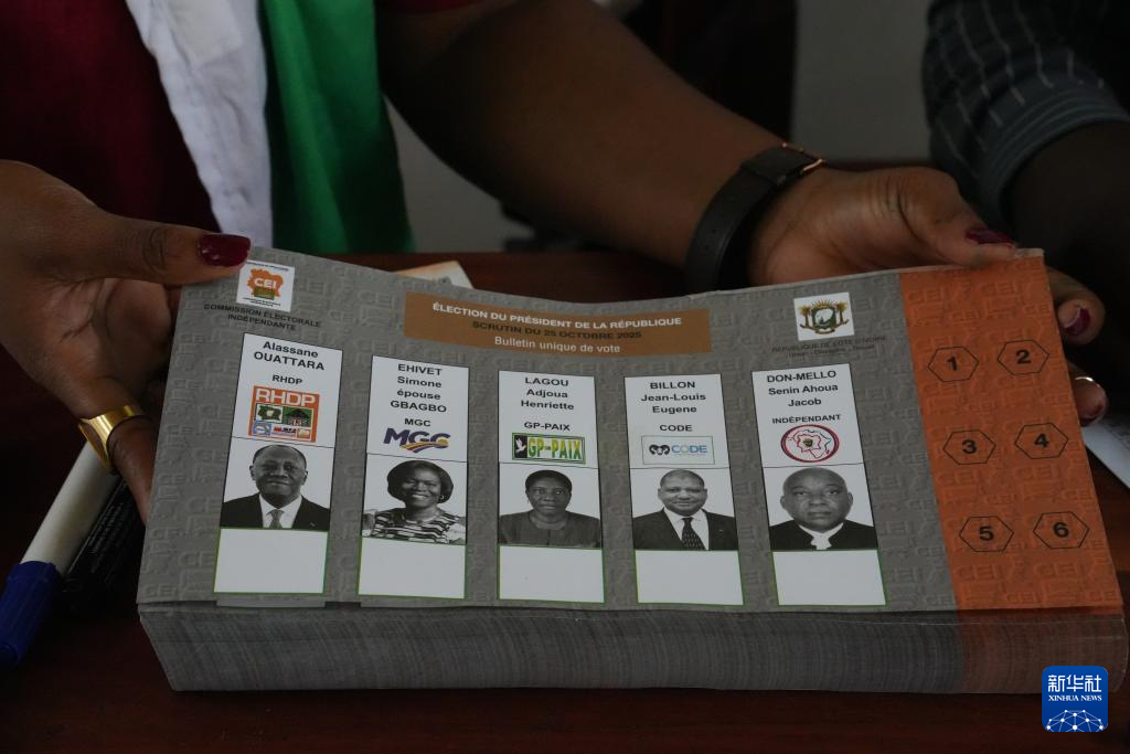 这是10月25日在科特迪瓦经济首都阿比让一投票站里拍摄的候选人信息。新华社记者张健摄  新华社阿比让10月25日电(记者张健)科特迪瓦总统选举25日正式拉开帷幕,现任总统阿拉萨内·瓦塔拉将与其他4名候